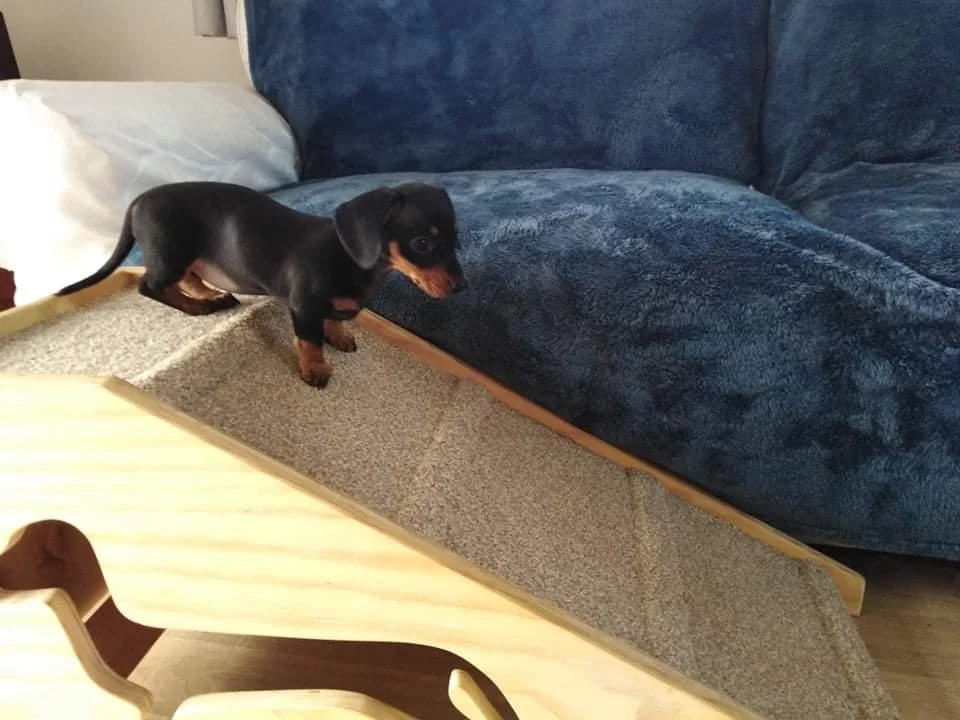 "Pearl just loves her new ramp, and can easily run up and down - just perfect for TV evenings in our house, and for catching the afternoon sun.."