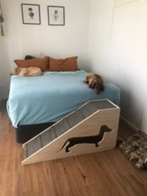 “I was so happy with the ramp for Gabby and Rocky. I got a second one but with the dog cut out. Thanks so much Rose and Trevor for delivering it. I’ve met the famous Poppy and she is adorable! Gabby likes the ramps so much she decided to have her naps on it.”